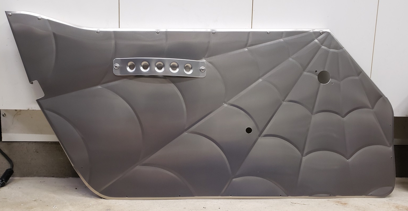 Each piece is covered in protective white plastic sheeting throughout all the marking, cutting, and beading operations to prevent scratches. After fabrication, I remove the plastic, and wax each piece with a spray-on stainless steel cleaner/wax/polish. The bare aluminum will look amazing in its raw finish! The wax gives the panels a beautiful semi-gloss look, prevents the aluminum from oxidizing, and is easy to re-apply periodically if you want to leave the aluminum bare.