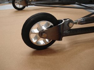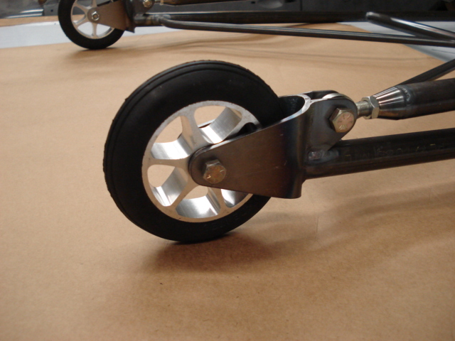 Tubing diameter and thickness has been selected to provide strength enough even for hard launching VW Pro-Stock cars, without unnecessary weight, yet still provide enough deflection to soften the hit. These wheelie bars are easily adjustable for height using threaded heim joints at each wheel. As of May 2007, all wheelie bar sets now come with the aluminum wheels that were previously an upgrade option. These wheelie bars are designed for VWs only and come unpainted.